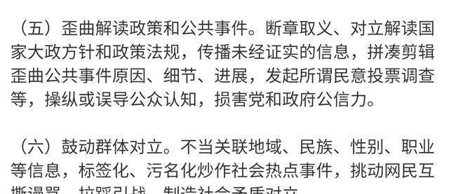 第六条,鼓动群体对立。 污名化炒作社会热点事件,制造社会矛盾对立。